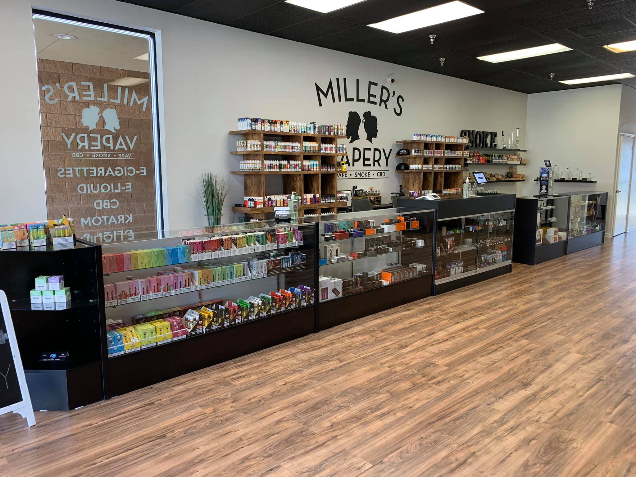At Miller’s Vapery we offer a large variety of premium e-liquid brands, a huge selection of disposables, the latest devices, mods and accessories!